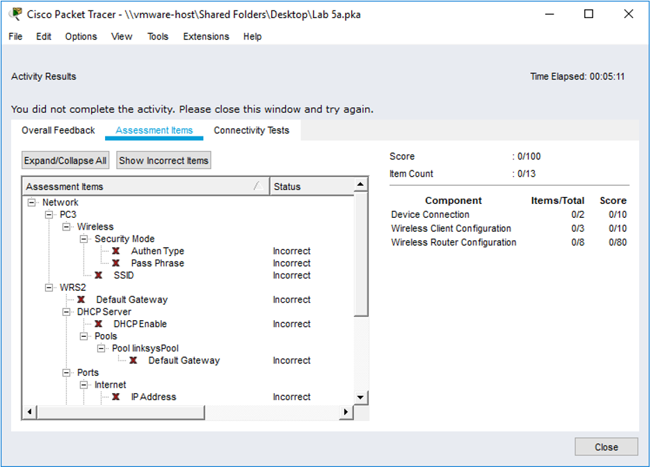 Mở file Lab 5c.pka và làm theo hướng dẫn bên dưới